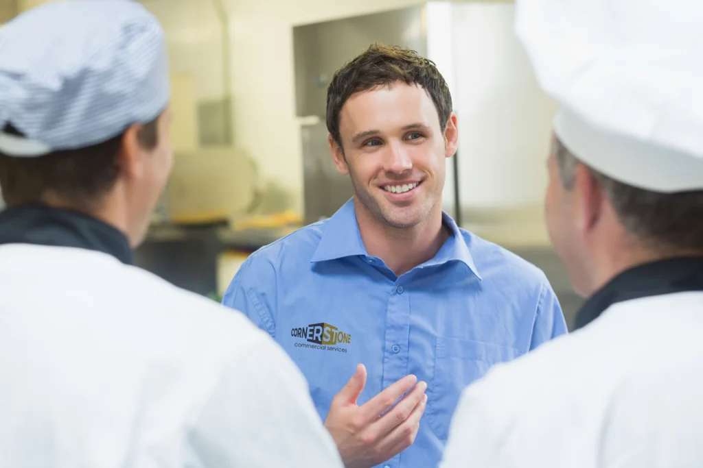 Maintaining cleanliness in commercial kitchens is non-negotiable, impacting health, safety, and overall operational efficiency. While in-house staff can handle routine cleaning, the expertise and efficiency of professional deep cleaning services cannot be overstated. From commercial kitchen hood vent cleaning to deep cleaning and disinfection, professionals ensure compliance with health standards, prolong equipment lifespan and enhance staff productivity. Ultimately, the decision between professional deep cleaning vs. in-house staff should be based on a careful assessment of your commercial kitchen cleaning needs. And when you’re ready to take the next step to reset your dirty kitchen back to like new, give Cornerstone Commercial Services a call for your FREE ONSITE ESTIMATE. 1-800-274-3905